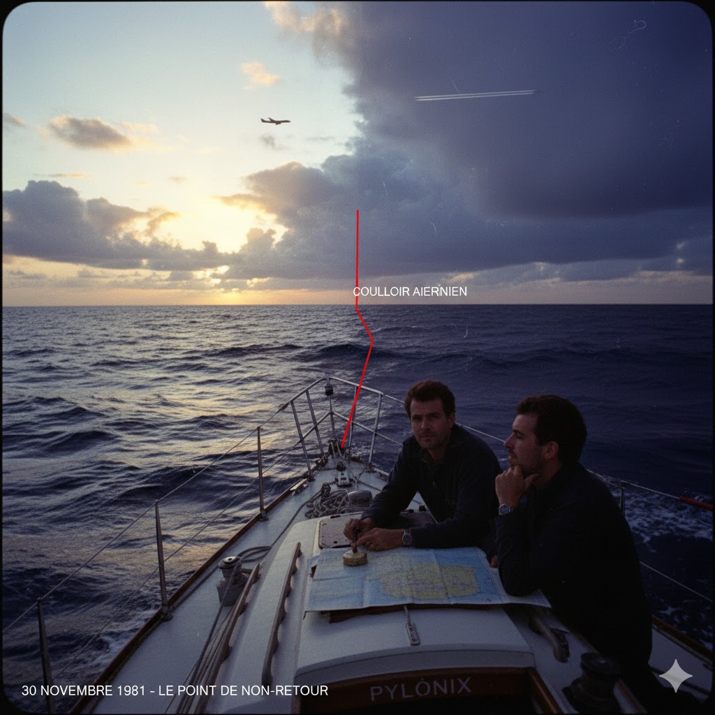 Le 17ème jour de la Transat des Alizés en 1981 marque un tournant. Découvrez l’exaltation du mi-parcours, l’ombre des dangers potentiels, la lutte mentale d’un marin et la surprise de rencontres aériennes inattendues au-dessus de l’immense Atlantique.